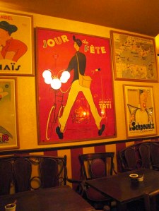 Einen tollen Eindruck hinterließ bei uns auch das Bistrot Chez Janou an der Rue Roger Verlomme 2 Ecke Rue de Tournelle im Maraisviertel nahe der Place des Vosges. Das sehr schön nostalgisch eingerichtete Lokal mit Plakaten von alten Tati-Filmen an der Wand, einer gewaltigen Pastis-Auswahl und gemäßigten Preisen (Tagesgericht ab 10 Euro) war leider für den Abend schon komplett ausgebucht, so dass wir dort nur zu einem Aperitif kamen. Sehr schade. Ohne Reservierung wird es wahrscheinlich immer schwer sein, einen Tisch zu bekommen, aber der Versuch lohnt auf jeden Fall. Unser Ersatzrestaurant am zweiten Abend, das Caruso in der Rue de Turenne 3, gerühmt wegen seiner guten italienischen Küche, war leider eine Enttäuschung: steif, ziemlich teuer und allenfalls mittelmäßig. Aber selbst schuld, wenn man ausgerechnet in Paris italienisch essen geht.
