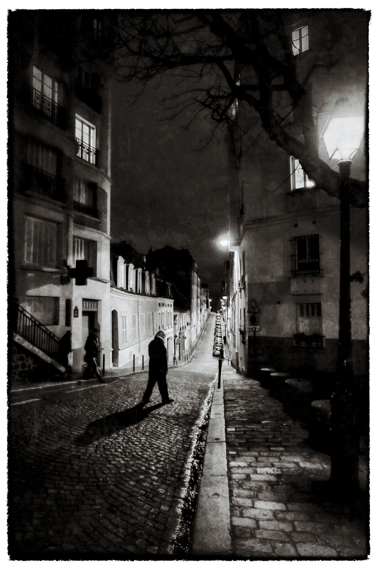Paris im Dezember. Die Tage sind kurz, der Himmel ist wolkenverhangen, die Straßencafés sind leer. Es ist kalt und gelegentlich fällt Regen. Andere Städte verlieren unter diesen Bedingungen viel von ihrem Reiz. Paris nicht. Im Gegenteil. Ich fühle mich dann wie in einem „Film noir“ aus den 50er oder 60er Jahren mit Jean Gabin, Jeanne Moreau, Lino Ventura und stelle meine Kamera auf Schwarz-Weiss.
