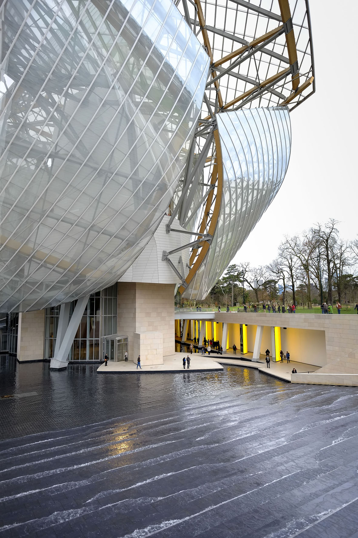 Als der französische Multimilliadär Bernard Arnault, Herrscher über den Luxusartikelkonzern LVHM Moet Hennessy -Louis Vuitton, vor acht Jahren die Stiftung Louis Vuitton gründete und den Stararchitekten Frank O. Gehry beauftragte, ein Haus für seine private Kunstsammlung in den Bois de Boulogne zu bauen, war schon klar, dass Paris eine neue spektakuläre Attraktion bekommen würde. Seit Oktober letzten Jahres ist das Gebäude mit dem Namen „Fondation Louis Vuitton“ eröffnet und zieht seitdem Massen kunstsinniger Touristen in den Park im Westen der Stadt. Wie ein Schiff unter vollen Segeln scheint die Konstruktion aus Glas, Stahl und Beton mit ihrem treppenartigen Brunnen an der Nordspitze in die weite See zu stechen.