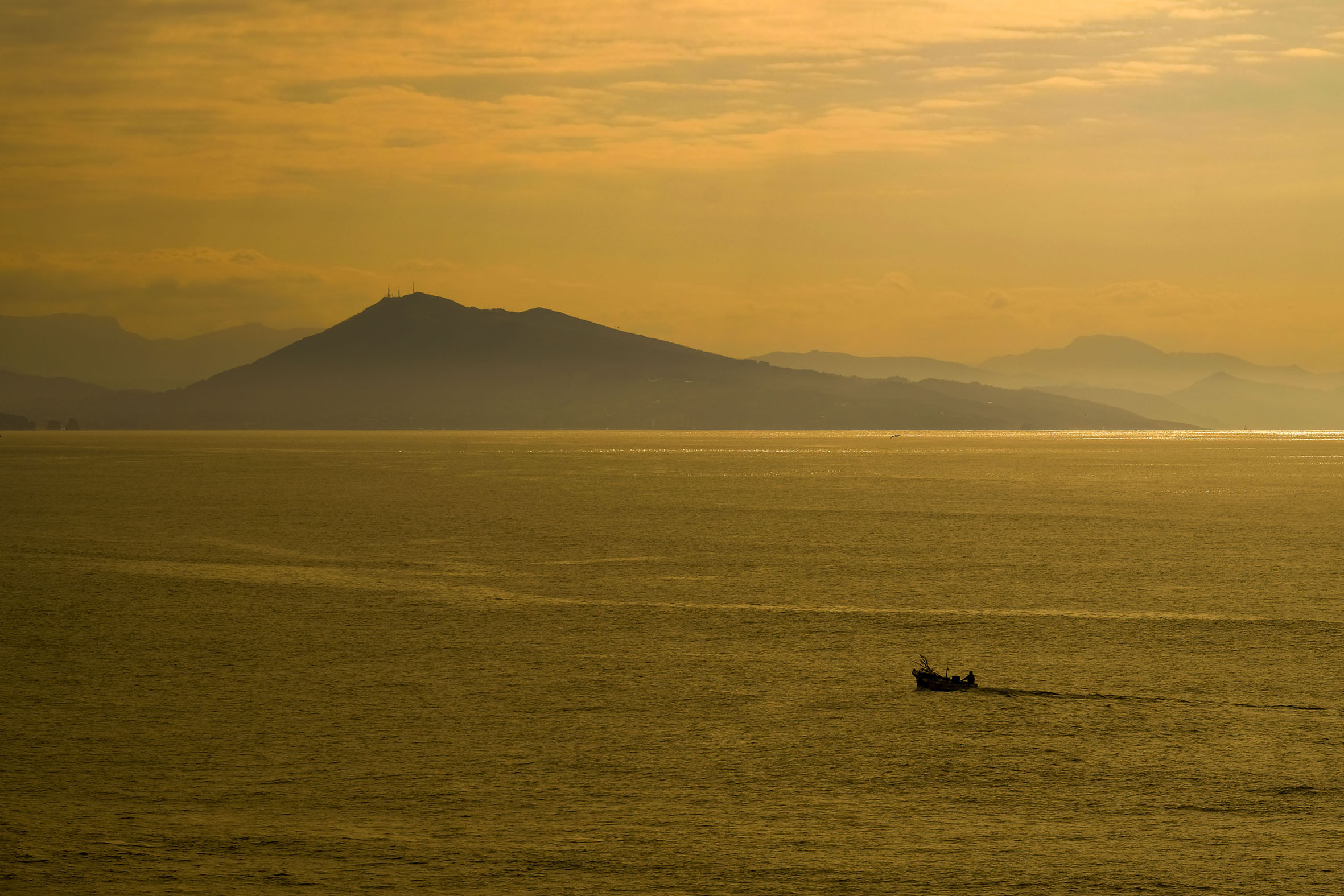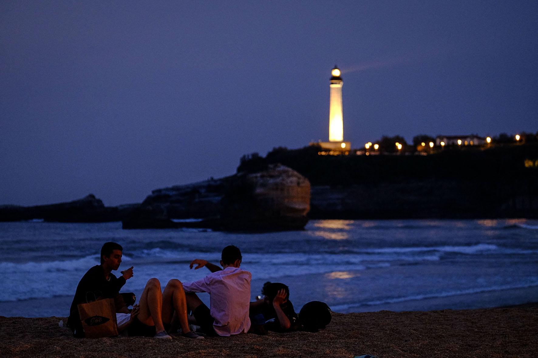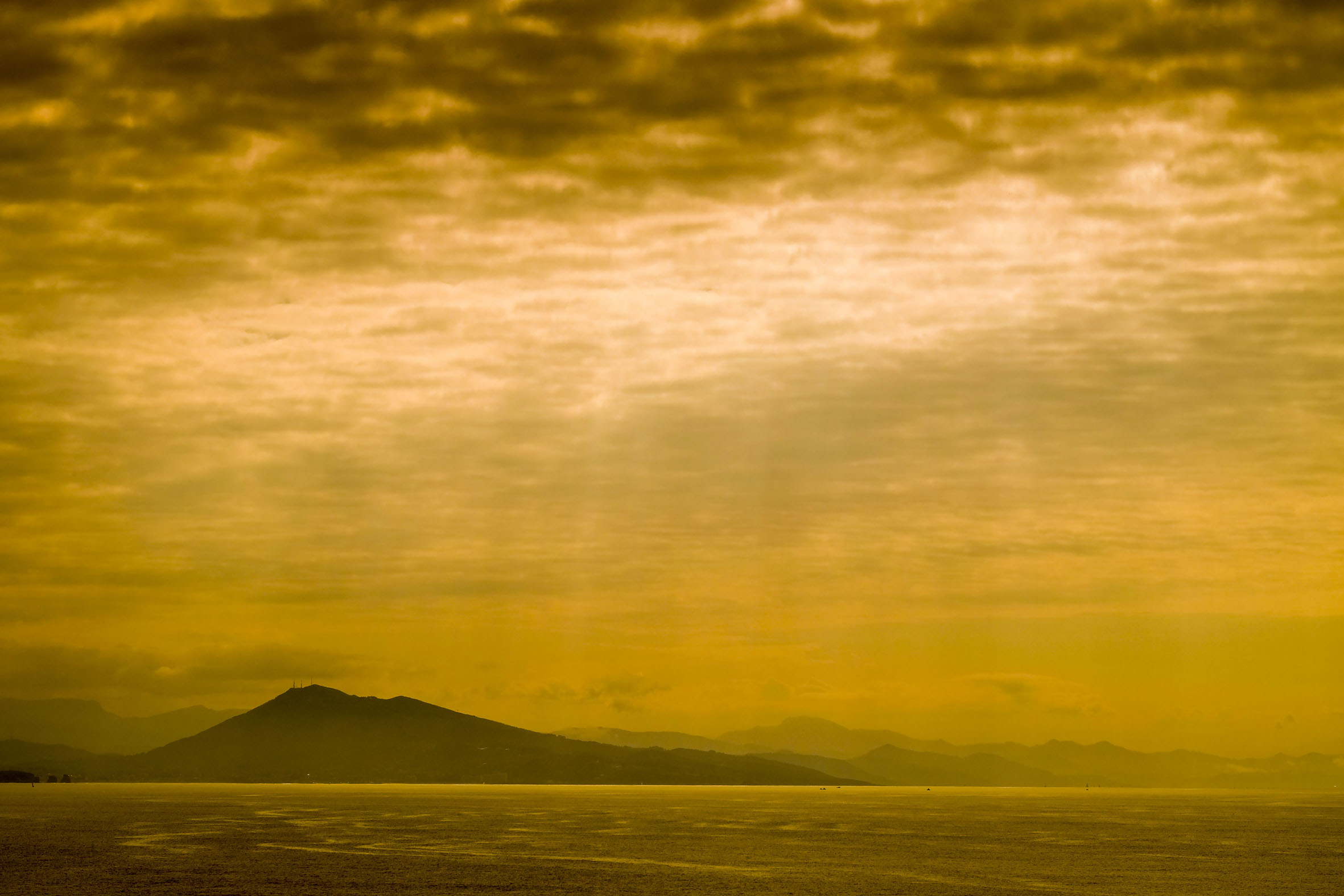 Dunkle Wolken und feine Regenschleier vor der baskischen Küste südlich von Biarritz. Das Foto entstand in diesem Frühjahr an einem Abend kurz nach Ostern. Der Südwesten Frankreichs erlebte die erste Hitzewelle des Jahres, und am Strand von Biarritz konnten man zuschauen, wie sich vor den Pyrenäenausläufern in Spanien die Wolken ausregneten.