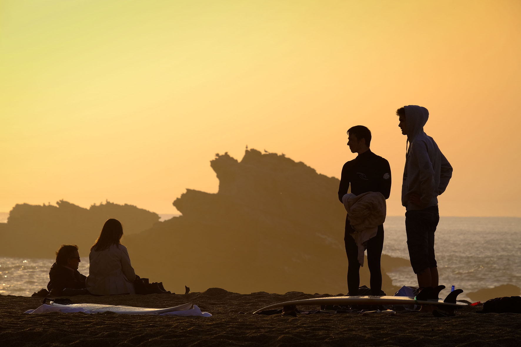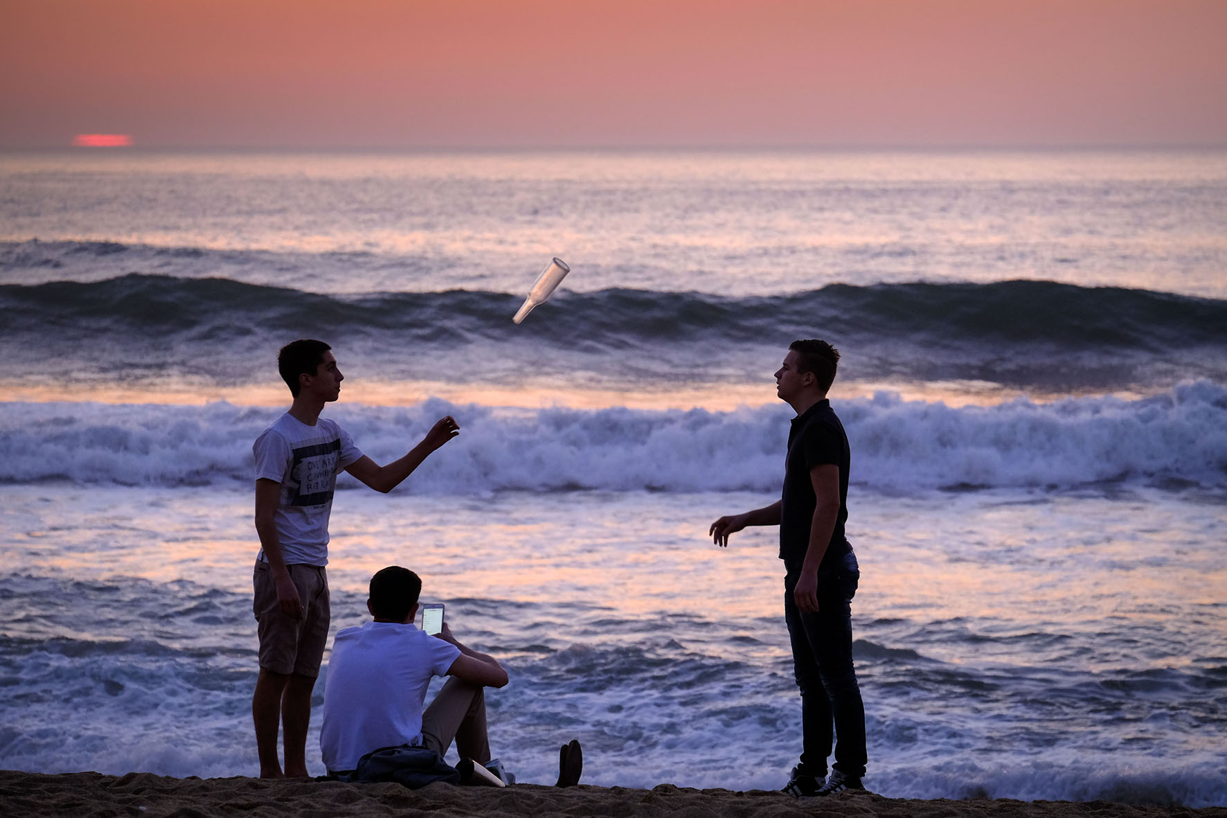 Die Zweifel an der richtigen Wahl unseres Urlaubsortes verdichten sich fast zur Gewissheit, als wir am Ostersonntag bei der ersten Ortsbegehung in einem dichten Pulk von Spaniern und im Tempo einer Fronleichnamsprozession über die berühmte Strandpromenade des Ortes geschoben werden. Die spanischen Männer tragen immer noch Trainingsanzüge, einige ihrer Frauen aber haben die Frottee-Hausanzüge gegen kurze, dünne, vorzugsweise rote Kleidchen und Pumps mit mindestens 10 Zentimeter hohen Absätzen getauscht. Am Ostersonntagmorgen. Bei eisigem Wind. Dazu haben manche von ihnen Makeup aufgetragen, als wollten sie an einem Dragqueen-Wettbewerb teilnehmen. Beschallt werden wir von einer riesigen Lautsprecheranlage neben dem Casino, die mühelos selbst die Iberer und die neben der Promenade dicht an dicht entlangröhrenden Autos und Motorräder übertönt. Über Ostern werden vor der Promenade die französischen Surfmeisterschaften ausgetragen, und fachkundige Kommentatoren preisen zwischen wummernden Disco-Bässen die sportlichen Leistungen auf den Wellen.