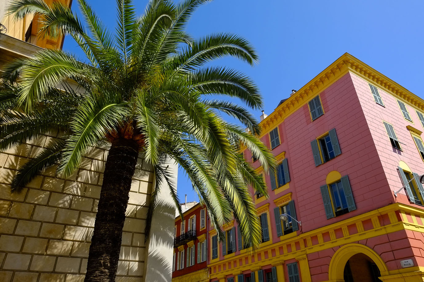 Im August kann Nizza schon anstrengend sein, voll, laut, grell, heiß. Aber dann entschädigen immer wieder die unfassbar vielen Ockertöne, in denen die Fassaden der Altstadthäuser gestrichen sind. Und da Nizza auch die Stadt der Süßigkeiten ist, darf es auch schon mal ins Bonbonfarbene gehen, wie hier am Hafen.