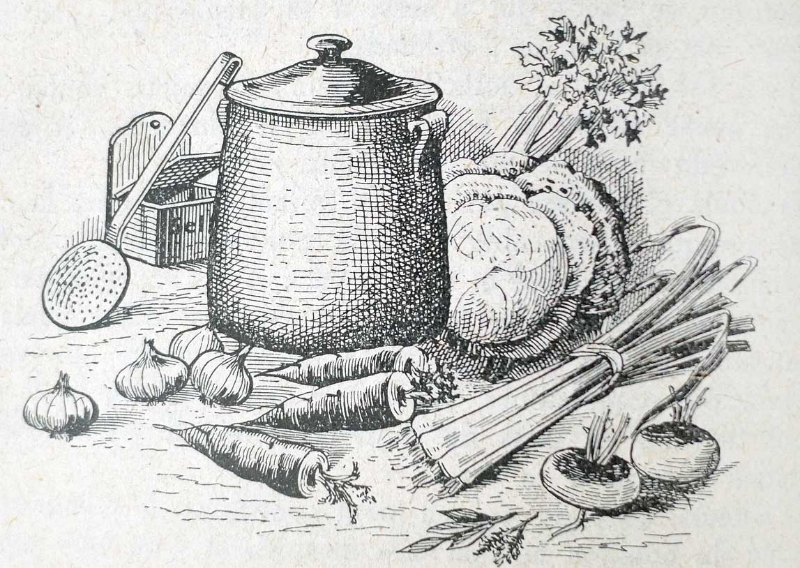 Dieser Auffassung möchte ich mich nicht nur ausdrücklich anschließen. In meinem neuen Blog werde ich vielmehr regelmäßig Menüvorschläge vorstellen, die erstmalig 1884 in einem Kochbuch mit dem Titel „LA CUISINE DE TOUS LE MOIS“ (Die Küche für alle Monate) veröffentlicht wurden. Wann und wie dieses alte Schätzchen in unseren Bücherschrank gelangt ist, lässt sich beim besten Willen nicht mehr feststellen. Es steht in einer Reihe mit alten Reiseführern und Wörterbüchern, die uns immer wieder gute Dienste leisten. Im besagten Kochbuch stellte der Autor Philéas Gilbert mindestens sechs Menüs für jeden Monat des Jahres zusammen, jeweils drei für das Mittag- und für das Abendessen. Dazu lieferte er selbstverständlich auch die genauen Rezepte der einzelnen Gänge und ergänzte seine Monatsempfehlungen durch Vorschläge, wie die Gemüse und Früchte der Saison haltbar gemacht werden konnten.
