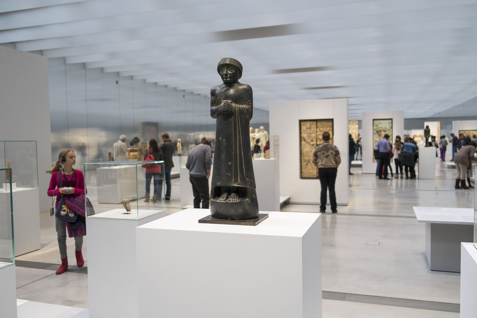 Zwar ist auch das neue Museum mit 28.000 qm nicht gerade ein Winzling, allerdings werden in seiner Dauerausstellung, die einen großen Teil dieser Ausstellungfläche einnimmt, gerade einmal 205 Meisterwerke aus 5 Jahrtausenden präsentiert. Alles ist luftig, hell, geräumig und leicht überschaubar. Bei unserem Besuch in der letzten Woche haben wir uns dort auf Anhieb wohl gefühlt.
